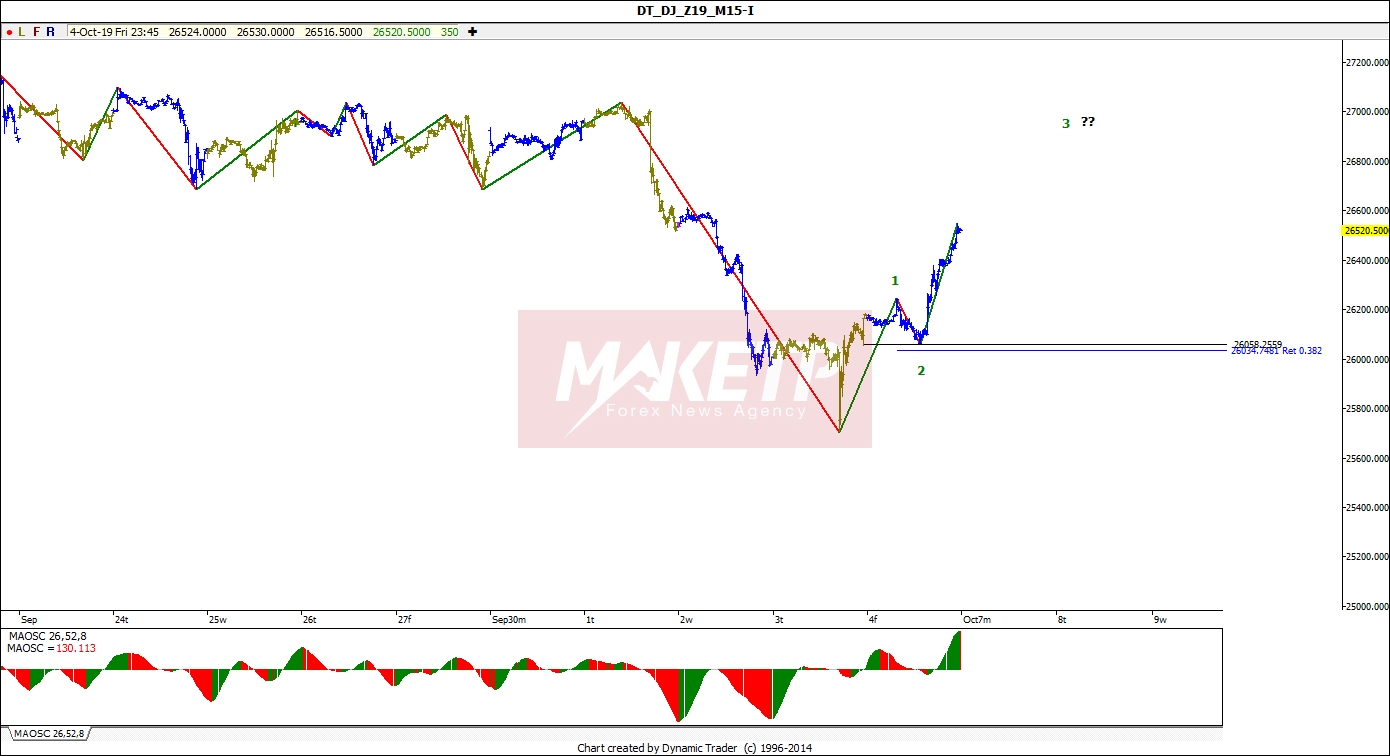 شاخص تجاری دائوجونز واکنش مناسبی به منطقه ی حمایتی داشت . رشد مناسب در قالب موج 1 را شاهد بودیم ، انتظار صعود دیگری در قالب موج 3 تا محدوده ی 2700 را داریم .