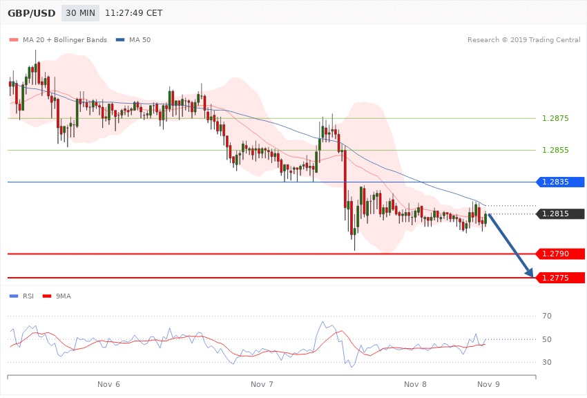 در حال حاضر از لحاظ تکنیکالی در محدوده فروش قرار داریم و تا زمانی که قیمت در پایین سطح 1.2835 قرار دارد همچنان پوزیشن فروش پیشنهاد می گردد.