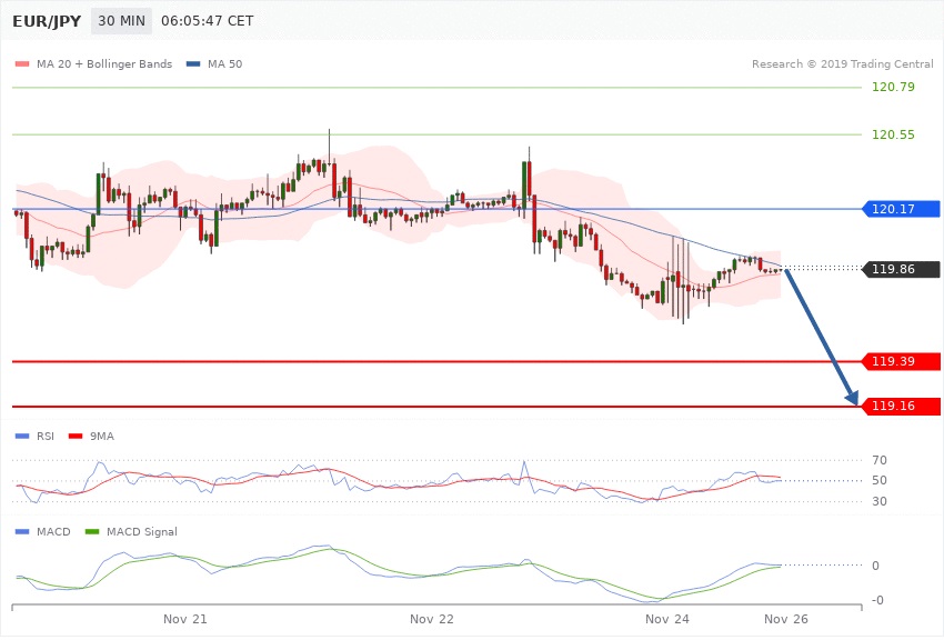 حد سود پوزیشن های فروش در سطح 119.39 و پس از آن در سطح 119.16 قرار خواهد داشت.