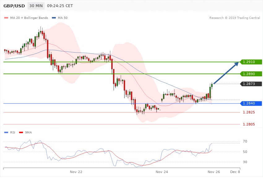 در حال حاضر از لحاظ تکنیکالی در محدوده خرید قرار داریم و تا زمانی که قیمت در بالای سطح 1.2840 قرار دارد همچنان پوزیشن خرید پیشنهاد می گردد.