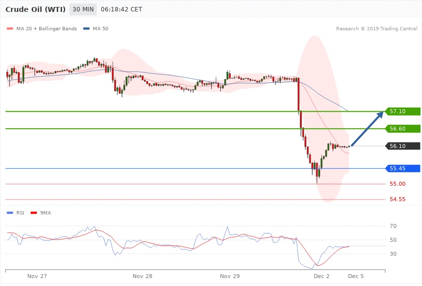 حد سود پوزیشن های خرید در سطح 56.60 و پس از آن در سطح 57.10 قرار خواهد داشت.