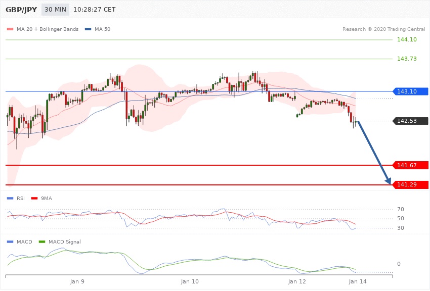 حد سود پوزیشن های فروش در سطح 141.67 و پس از آن در سطح 141.29 قرار خواهد داشت.