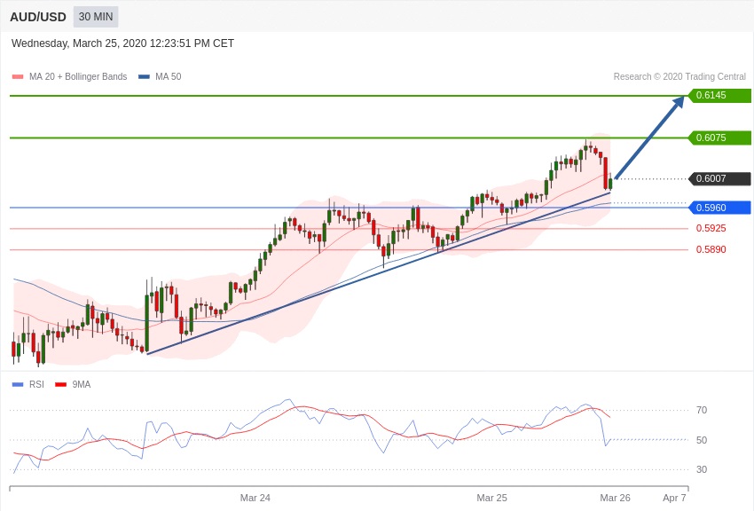 در حال حاضر از لحاظ تکنیکالی در محدوده خرید قرار داریم و تا زمانی که قیمت در بالای سطح 0.5960 قرار دارد همچنان پوزیشن خرید پیشنهاد می گردد.