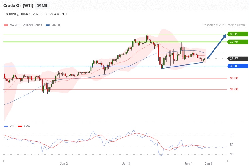 حد سود پوزیشن های خرید در سطح 37.65 و پس از آن در سطح 38.15 قرار خواهد داشت.