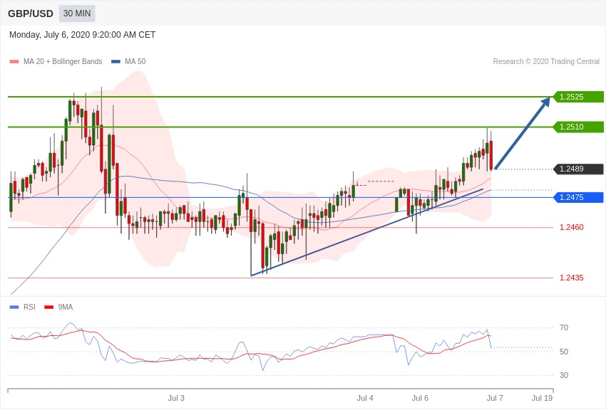 در حال حاضر از لحاظ تکنیکالی در محدوده خرید قرار داریم و تا زمانی که قیمت در بالای سطح 1.2475 قرار دارد همچنان پوزیشن خرید پیشنهاد می گردد.