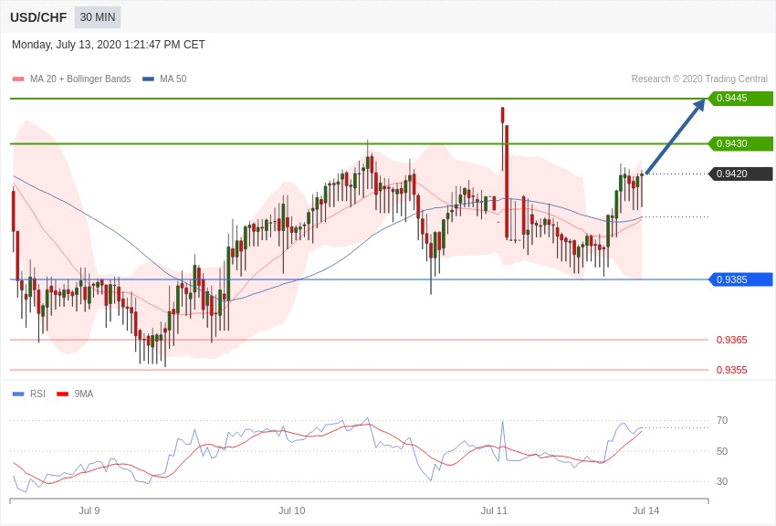 در حال حاضر از لحاظ تکنیکالی در محدوده خرید قرار داریم و تا زمانی که قیمت در بالای سطح 0.9385 قرار دارد همچنان پوزیشن خرید پیشنهاد می گردد.
