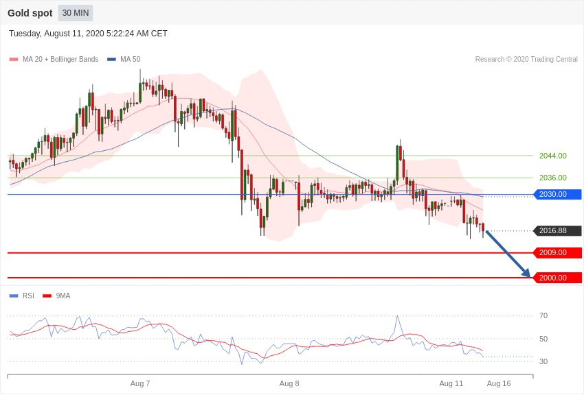 حد سود پوزیشن های فروش در سطح 2009.00 و پس از آن در سطح 2000.00 قرار خواهد داشت.