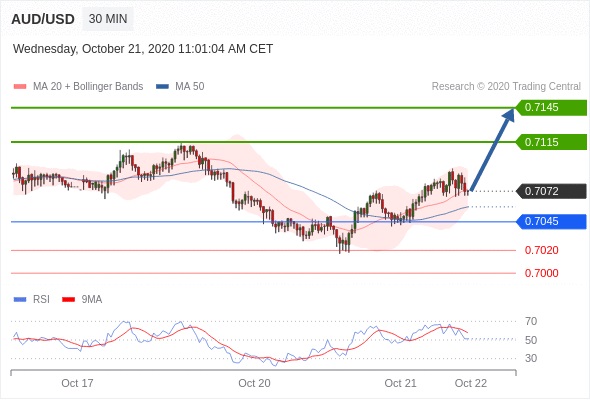 در حال حاضر از لحاظ تکنیکالی در محدوده خرید قرار داریم و تا زمانی که قیمت در بالای سطح 0.7045 قرار دارد همچنان پوزیشن خرید پیشنهاد می گردد.