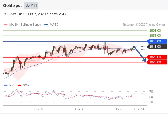 حد سود پوزیشن های فروش در سطح 1829.00 و پس از آن در سطح 1823.00 قرار خواهد داشت.