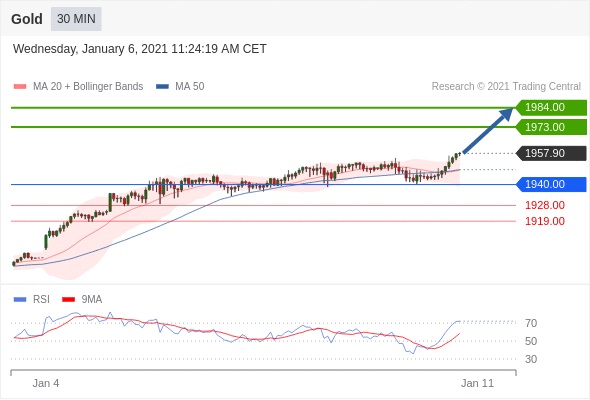در حال حاضر از لحاظ تکنیکالی در محدوده خرید قرار داریم و تا زمانی که قیمت در بالای سطح 1940.00 قرار دارد همچنان پوزیشن خرید پیشنهاد می گردد.