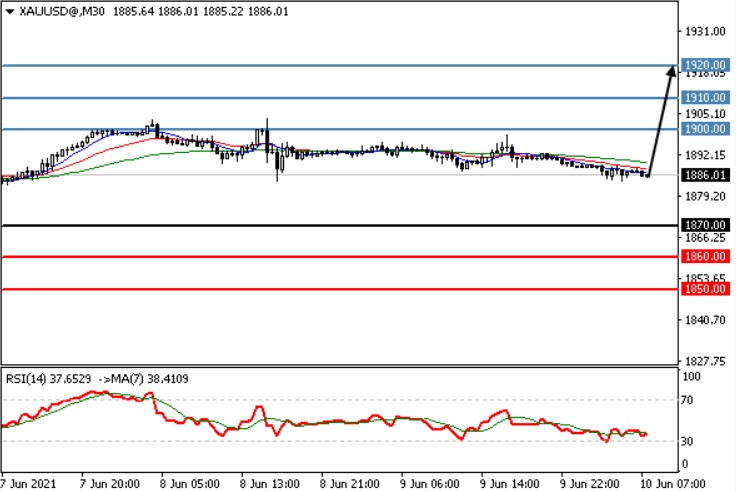 در حال حاضر از لحاظ تکنیکالی در محدوده خرید قرار داریم و تا زمانی که قیمت در بالای سطح 1870.00 قرار دارد همچنان پوزیشن خرید پیشنهاد می گردد.